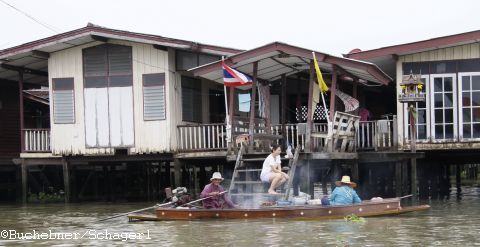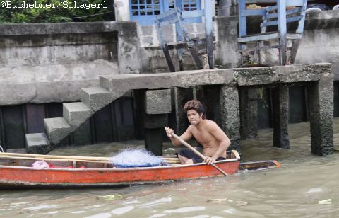 Natuerlich stand auch eine Bootstour auf dem Chao Phraya auf dem Plan. Nachdem Bangkok vor der Modernisierung (Strassen, Skytrain, …) das Venedig von S-O-Asien genannt wurde, gibt es hier viele Kanaele, die vom Chao Phraya zu den verschiedensten Stadteilen fuehren.