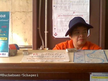 diese nette Dame vercheckt die Tickets an der Pier