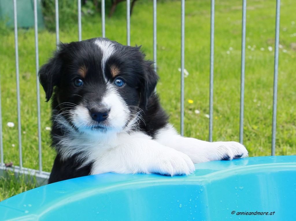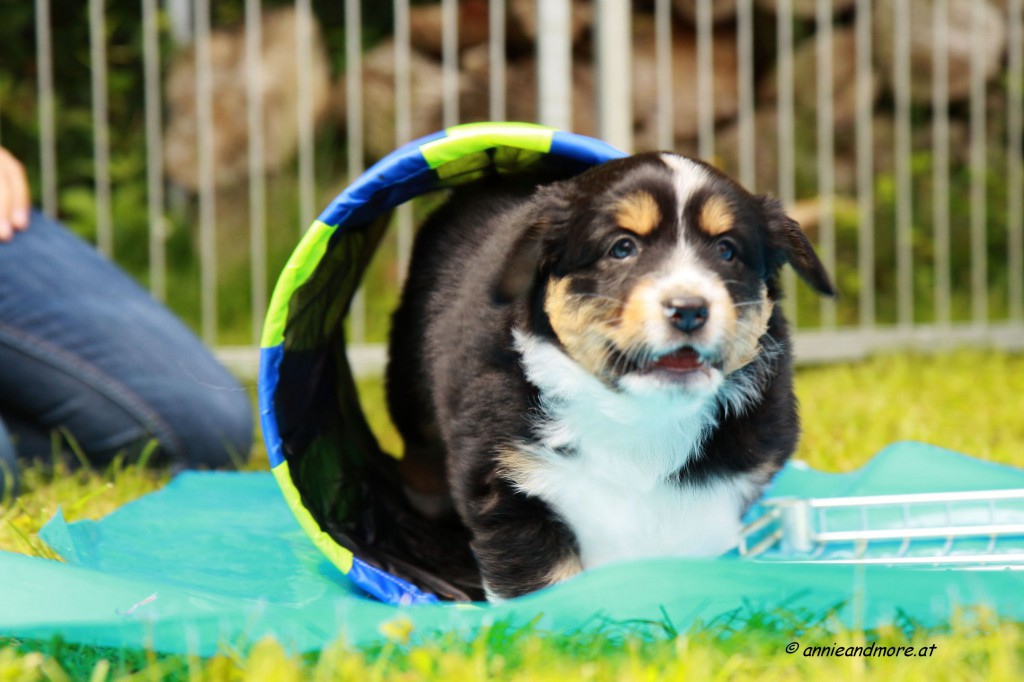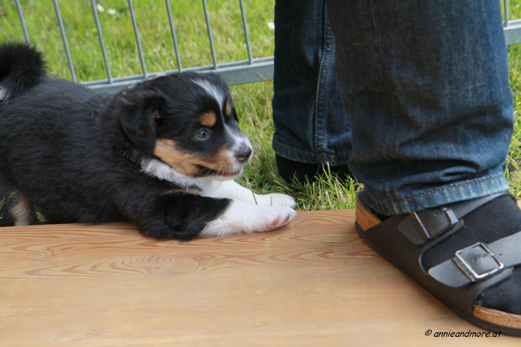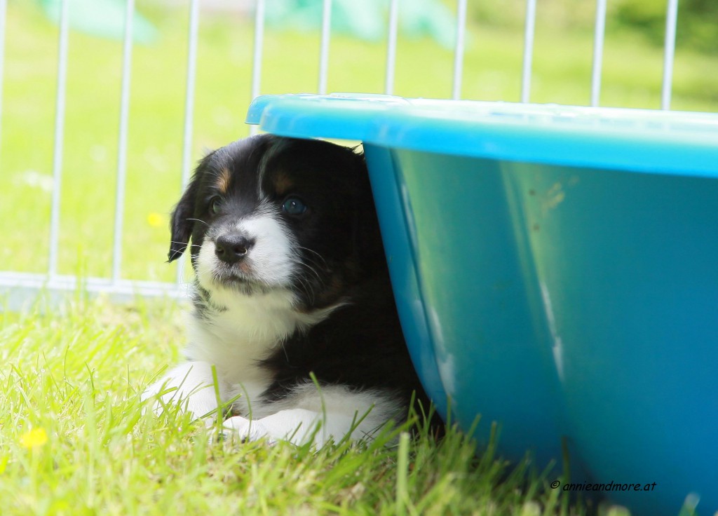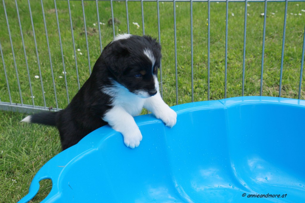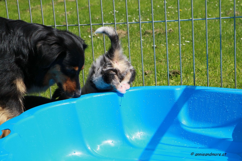 … der erste Besuch im Welpenbad – früh übt sich, wer ein echter Australien Shepherd werden will