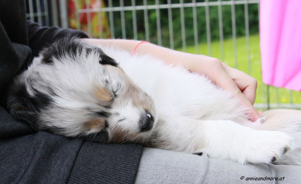 Die kleinen Aussies sind oft schon recht frech, aber Mama Holly macht das wirklich toll, auch wenn sie sich manchmal ein bisschen viel bieten lässt